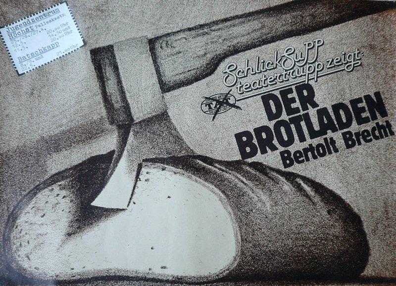 • 1980. Der Brotladen/The Breadshop by Bertolt Brecht with Schlicksupp teatertrupp, Frankfurt a.M. Germany, in a slaughterhouse, a wharf, tents, abandoned factories, on a clearing in the woods, practically all venues except theaters.