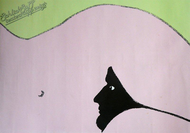 originated from the forced closing of the famous Theater am Turm in Frankfurt am Main. Eight actors decided to go on independently, with Paul Binnerts as their director. The group was one of the first professional so-called ‘free’ theater groups in Germany. Frankfurt, at that time, was the centre of the alternative movement. The Sogenanntes Linksradikales Blasorchester (So-called Radical Left Wind Orchestra) led by Heiner Goebbels was a household name of the movement, and Schlicksupp enjoyed the support of a big audience. The composers for their performances came from this orchestra. In the six years of her existence Schlicksupp became famous with performances like Der Brotladen/The Breadshop, Drei Frauen/Three Women, and Flametti. These performances toured in and outside the country, and were invited to international festivals. Schlicksupp is still a well-known name among the generation that grew up at that time. The group worked as a unique collective, and developed a special method of creating plays through improvisation. For their productions they used material - dramatic, literary, and documentary - rather than just the text of existing plays.