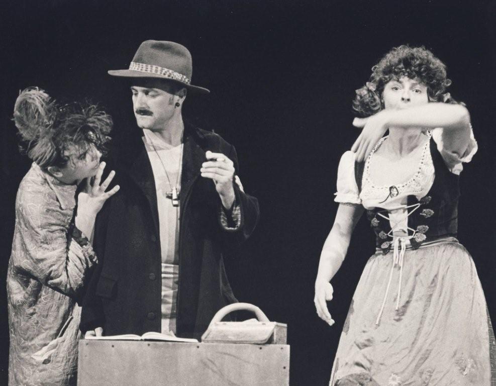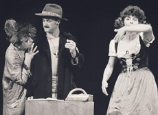 Flametti, a montage piece based on poems and material of the DADA movement, and the novel by Hugo Ball, with music by Annemarie Roelofs. Schlicksupp teatertrupp, in collaboration with the Rotterdamse Toneelraad, Frankfurt am Main, 1982.